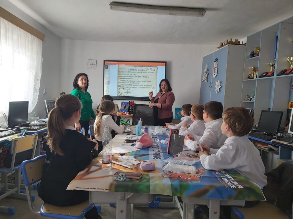 În cadrul activităţii interactive, elevii şi-au pus în valoare creativitatea , atât prin lucrări proprii realizate în cadrul cercului de artă textilă pe care îl frecventează, cât şi prin prezentarea unui film realizat de eleve de la Colegiul Naţional “Cuza Vodă” Huşi, filmuleţ care a participat la un concurs în cadrul zilelor şcolii, obţinând locul al 2-lea. La sfârşitul activităţii copiii s-au felicitat reciproc.