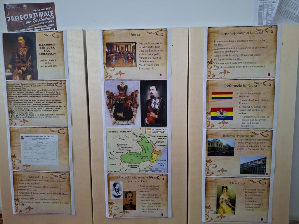 Colectivul de cadre didactice de la Clubul Copiilor „Spiru Haret” , Barlad, a sarbatorit in avans, ziua de 24 ianuarie, anul acesta implinindu-se 167 de ani de cand România a făcut un pas important spre unitate, unind Moldova și Țara Românească sub conducerea lui Alexandru Ioan Cuza. Domnul profesor Iulian Mancas a prezentat aspecte referitoare la Unirea din 1859, subliniind importanta reformelor infaptuite de AL. I. Cuza, care au dus la faurirea statului unitar roman, a amintit despre monstruoasa coalitie, precum si despre apartenenta documentata a domnitorului, la urbea barladeana. Domnul profesor dr Dan Horgan a prezentat Rolul icoanei de vatra in unirea spirituala a tuturor romanilor, in contextul oprimarii populatiei ortodoxe de catre imperiul austro-ungar. Structura Huşi a clubului, impreuna cu elevii, s-a alăturat on-line evenimentului.