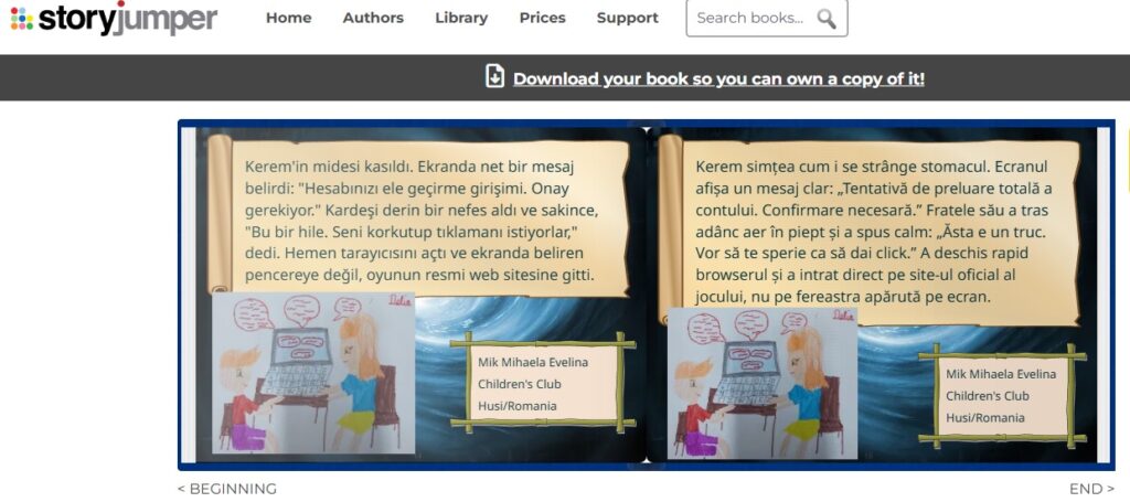 Cu prilejul Zilei Siguranței pe Internet, marcată la data de 10 februarie 2026, elevii din ciclul primar, membri ai cercului Chimie Experimentală – Protecția Mediului de la Clubul Copiilor Huși, coordonați de doamna profesor Mik Mihaela Evelina, au desfășurat activități educative dedicate navigării în siguranță în mediul online. În cadrul întâlnirii, elevii au discutat despre regulile de bază ale utilizării responsabile a internetului, despre importanța protejării datelor personale și despre comportamentul adecvat în mediul digital. Activitățile au fost îmbinate armonios cu creativitatea și lucrul în echipă. Împreună cu partenerii din proiectul eTwinning „GREEN HOMELAND – STEM”, elevii au participat la realizarea unei povești colaborative folosind aplicația StoryJumper. Aceștia au continuat povestea începută de partenerii internaționali și au ilustrat, prin desene originale, secvența creată de ei. Fiecare elev a realizat un desen, iar prin vot democratic a fost ales desenul care a fost inclus în povestea finală. Activitatea a reprezentat o experiență educativă valoroasă, prin care elevii au învățat că internetul poate fi un spațiu sigur și util atunci când este folosit cu responsabilitate, creativitate și respect.