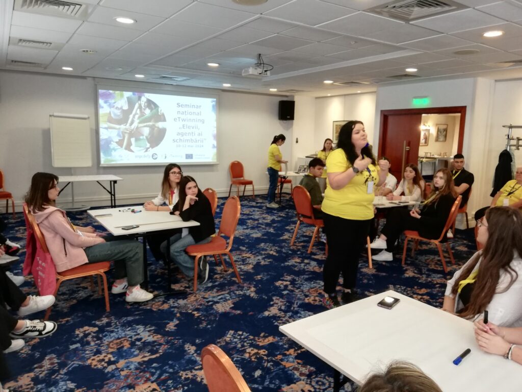 Explorând Orizonturi Noi în Educație: Participarea noastră la Seminarul Național eTwinning „Elevii, agenți ai schimbării” În perioada 10-12 mai 2024, am avut onoarea să reprezint Clubul Copiilor Huși alături de doi elevi deosebiți, Victor și Edi, la Seminarul Național eTwinning „Elevii, agenți ai schimbării”, organizat de ANPCDEFP- Centrul Național eTwinning România. Acest eveniment a fost o oportunitate excepțională de a învăța, de a interacționa și de a ne conecta cu alte cadre didactice și elevi pasionați de educație din întreaga țară. În cadrul seminarului, am avut parte de activități variate și interactive, de la ateliere practice la sesiuni de brainstorming și discuții pe teme actuale referitoare la proiectele eTwinning. Victor, Edi și cu mine am fost impresionați de energia și de entuziasmul colegilor noștri participanți, dar și de profesionalismul și dedicarea echipei de organizare. Am avut șansa să învățăm noi metode și tehnici de predare, să descoperim resurse educaționale inovatoare și să ne punem în aplicare ideile și proiectele noastre. Participarea noastră la Seminarul Național eTwinning a fost nu doar o experiență educativă, ci și o ocazie de a lega noi prietenii și colaborări care să ne îmbogățească parcursul educațional și să ne inspire să continuăm să explorăm noi orizonturi în domeniul educației. Ne simțim privilegiați să facem parte dintr-o comunitate atât de vibrantă și dedicată în promovarea inovației și a schimbului de experiențe în educație. Cu siguranță, această experiență ne va ghida și în viitorul nostru profesional și personal, iar ceea ce am învățat și am experimentat la acest seminar va rămâne cu noi pentru totdeauna. prof. Mik Mihaela Evelina Clubul Copiilor Huși, jud. Vaslui